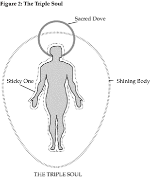 The words of wisdom, techniques, and philosophies from these traditions have become foundations for my own worldview, spiritual traditions and practices. Over the years I have taken these teachings and woven them together with some of my own understanding. What I am about to share is a result of this process. I have worked with different thought models and have finally found this to be the best one for me. I do encourage anyone reading this to explore and learn, to find the threads that you can weave together to create your own personal understanding. The names “Sticky One”, “Shinning Body” and “Sacred Dove” came to me from “Evolutionary Witchcraft” by T. Thorn Coyle and I believe are a part of the teaching of the Feri Tradition and are not my own. The Elemental relationships I discuss are the result of my own process and understanding and are not attributed to these sources.